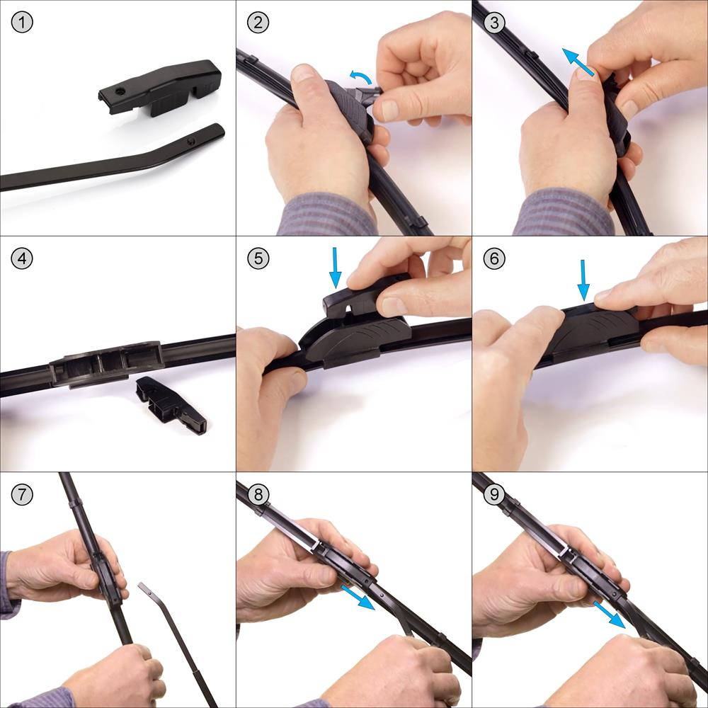 - adaptéry (časti slúžiace na spojenie lišty s ramenom stierača) M6 + M11 .