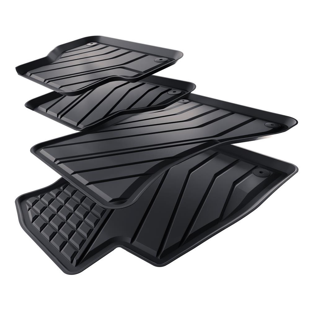 - Koberčeky majú moderný vzor s matnou konečnou úpravou. Každá súprava je vyrobená na mieru pre konkrétny model a generáciu auta, čo zaisťuje stopercentné prispôsobenie podlahe vozidla. Súprava tiež obsahuje zarážky, ak sa v danom modelu auta vyskytujú.
