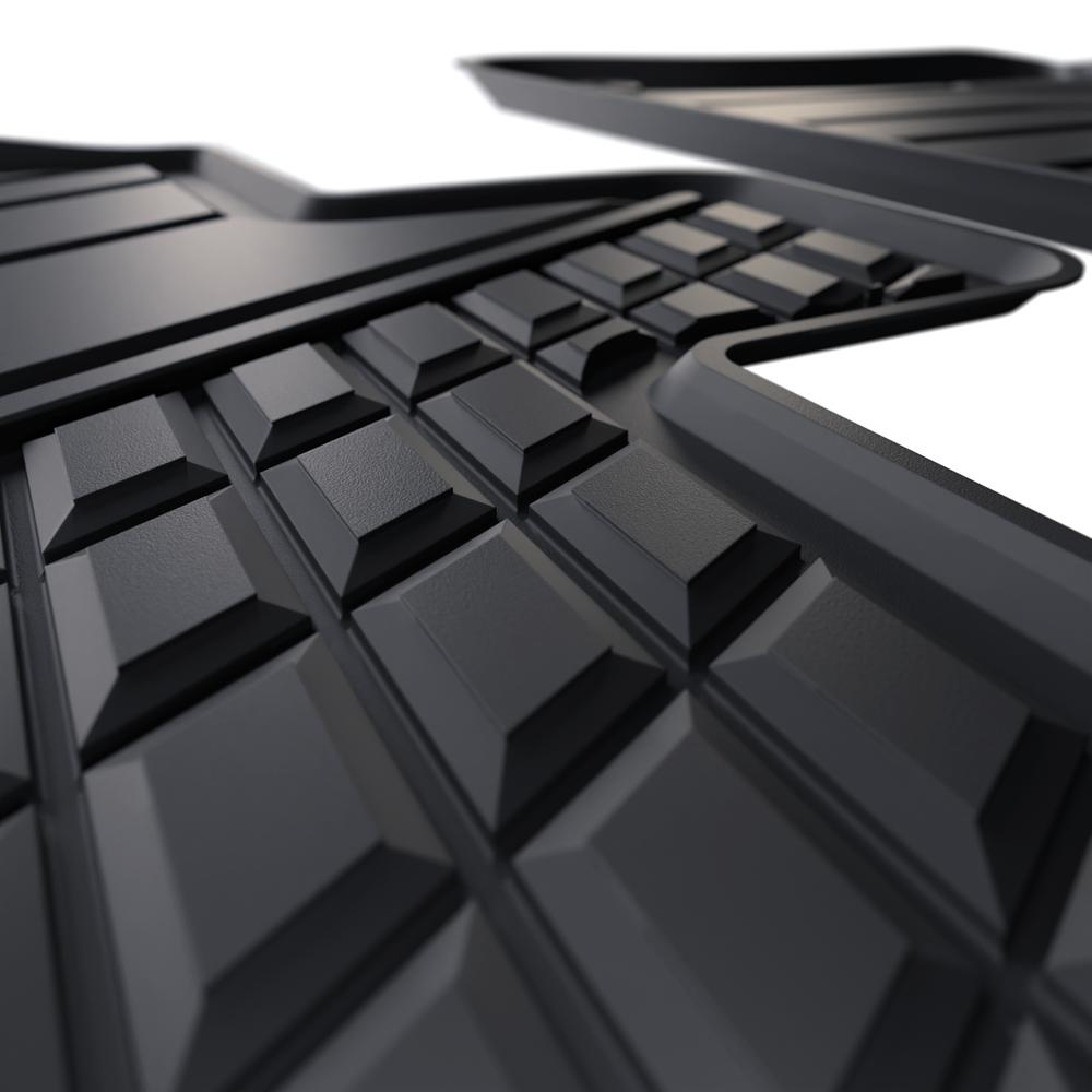 - Koberčeky majú moderný vzor s matnou konečnou úpravou. Každá súprava je vyrobená na mieru pre konkrétny model a generáciu auta, čo zaisťuje stopercentné prispôsobenie podlahe vozidla. Súprava tiež obsahuje zarážky, ak sa v danom modelu auta vyskytujú.