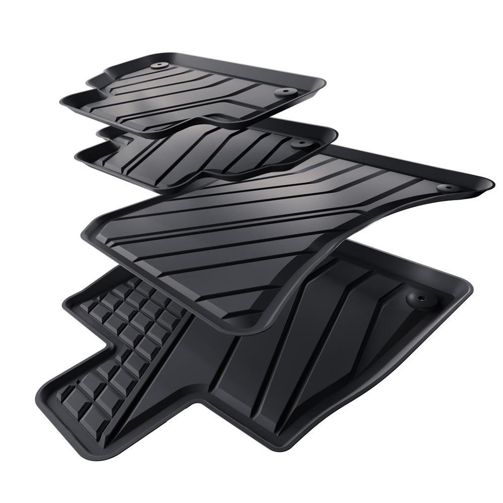 - Koberčeky majú moderný vzor s matnou konečnou úpravou. Každá súprava je vyrobená na mieru pre konkrétny model a generáciu auta, čo zaisťuje stopercentné prispôsobenie podlahe vozidla. Súprava tiež obsahuje zarážky, ak sa v danom modelu auta vyskytujú.