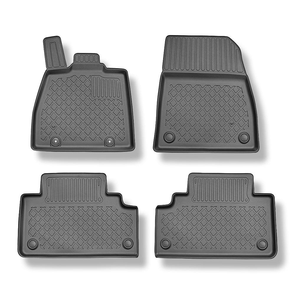 - Koberčeky majú moderný vzor s matnou konečnou úpravou. Každá súprava je vyrobená na mieru pre konkrétny model a generáciu auta, čo zaisťuje stopercentné prispôsobenie podlahe vozidla. Súprava tiež obsahuje zarážky, ak sa v danom modelu auta vyskytujú.