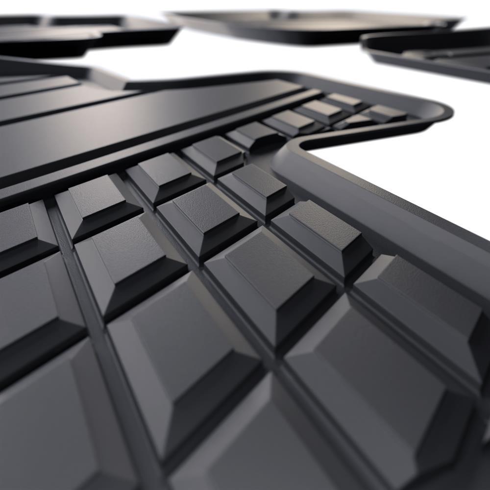 - Koberčeky majú moderný vzor s matnou konečnou úpravou. Každá súprava je vyrobená na mieru pre konkrétny model a generáciu auta, čo zaisťuje stopercentné prispôsobenie podlahe vozidla. Súprava tiež obsahuje zarážky, ak sa v danom modelu auta vyskytujú.