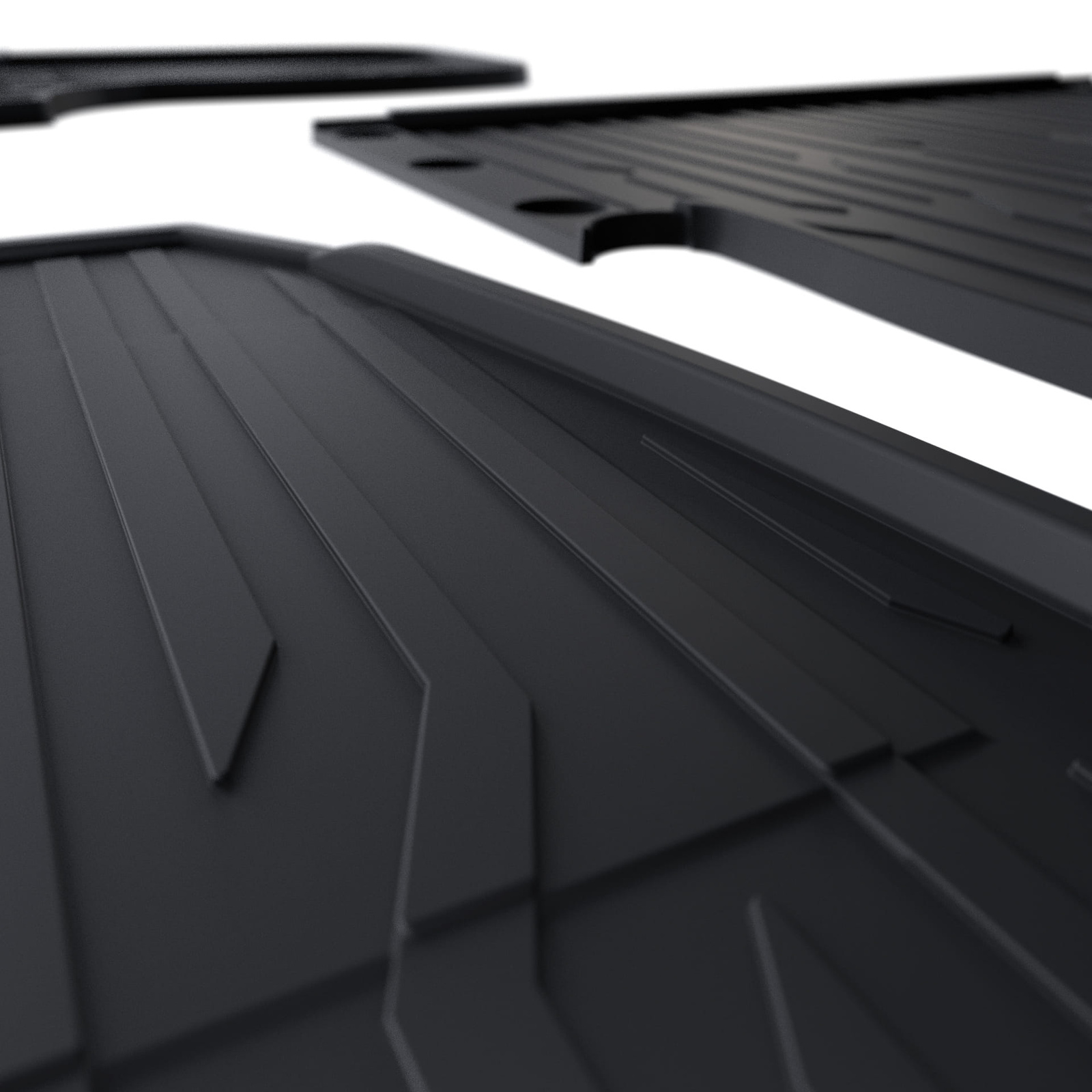 - Koberčeky majú moderný vzor s matnou konečnou úpravou. Každá súprava je vyrobená na mieru pre konkrétny model a generáciu auta, čo zaisťuje stopercentné prispôsobenie podlahe vozidla. Súprava tiež obsahuje zarážky, ak sa v danom modelu auta vyskytujú.