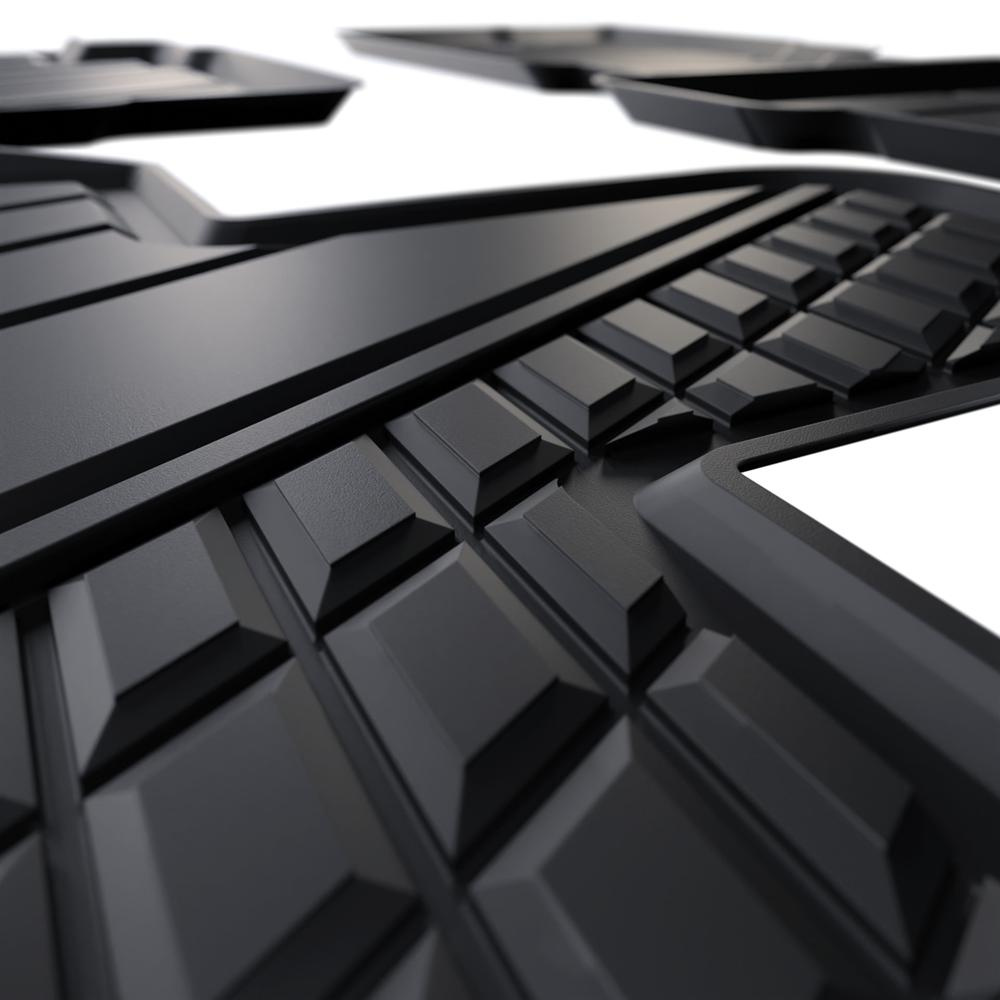- Koberčeky majú moderný vzor s matnou konečnou úpravou. Každá súprava je vyrobená na mieru pre konkrétny model a generáciu auta, čo zaisťuje stopercentné prispôsobenie podlahe vozidla. Súprava tiež obsahuje zarážky, ak sa v danom modelu auta vyskytujú.
