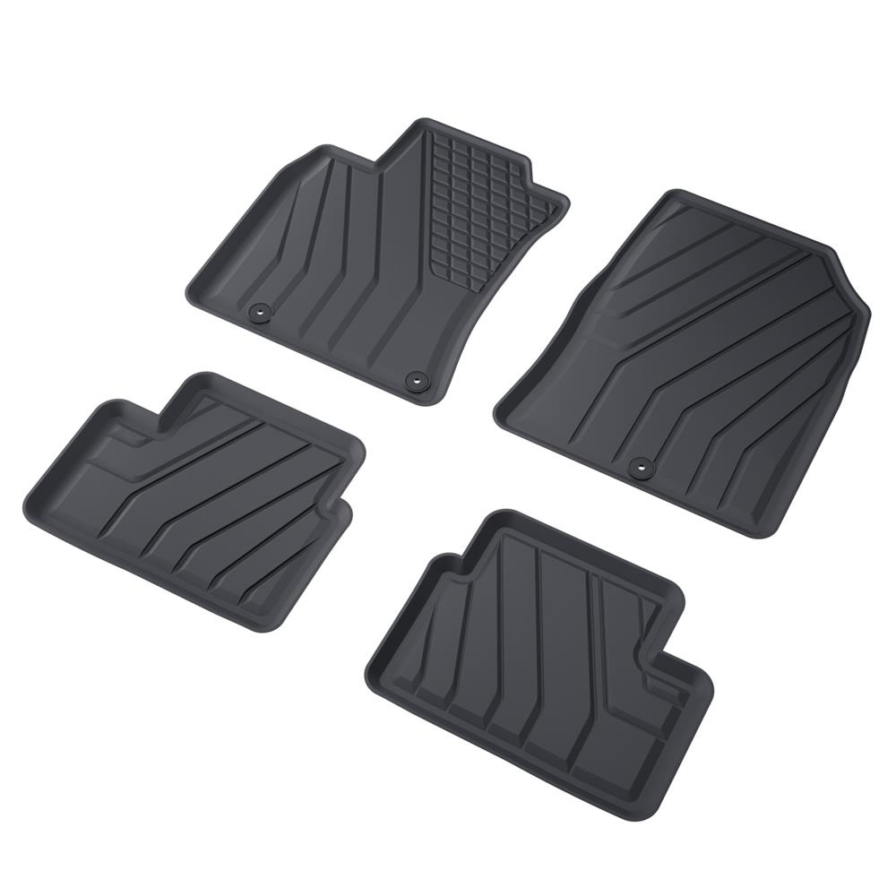 - Koberčeky majú moderný vzor s matnou konečnou úpravou. Každá súprava je vyrobená na mieru pre konkrétny model a generáciu auta, čo zaisťuje stopercentné prispôsobenie podlahe vozidla. Súprava tiež obsahuje zarážky, ak sa v danom modelu auta vyskytujú.