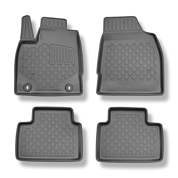 - Koberčeky majú moderný vzor s matnou konečnou úpravou. Ogni set viene prodotto su misura per il dato modello e serie dell’auto, assicurando un adattamento al 100% al pavimento dell'autovettura. Súprava tiež obsahuje zarážky, ak sa v danom modelu auta vyskytujú.
