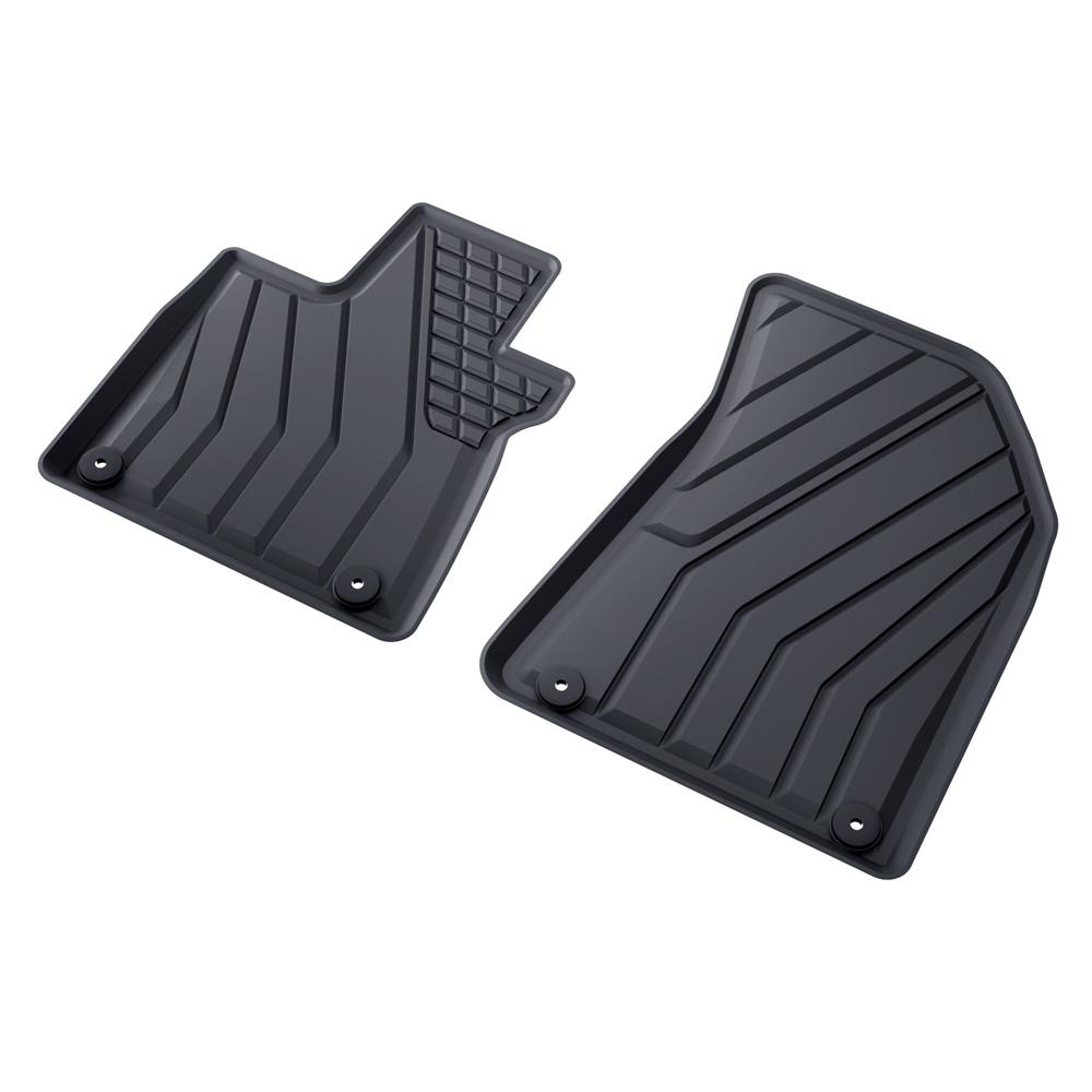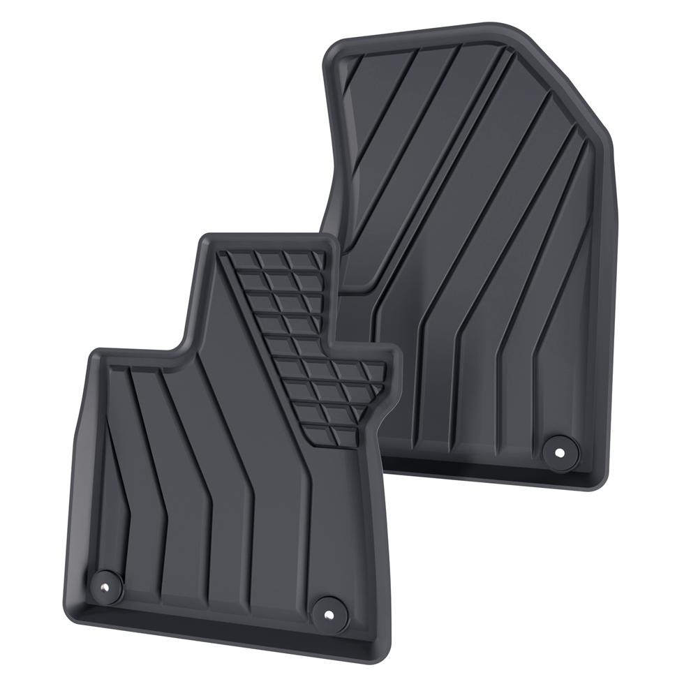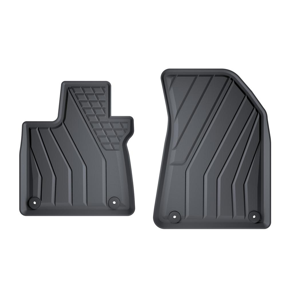 - Koberčeky majú moderný vzor s matnou konečnou úpravou. Každá súprava je vyrobená na mieru pre konkrétny model a generáciu auta, čo zaisťuje stopercentné prispôsobenie podlahe vozidla. Súprava tiež obsahuje zarážky, ak sa v danom modelu auta vyskytujú.