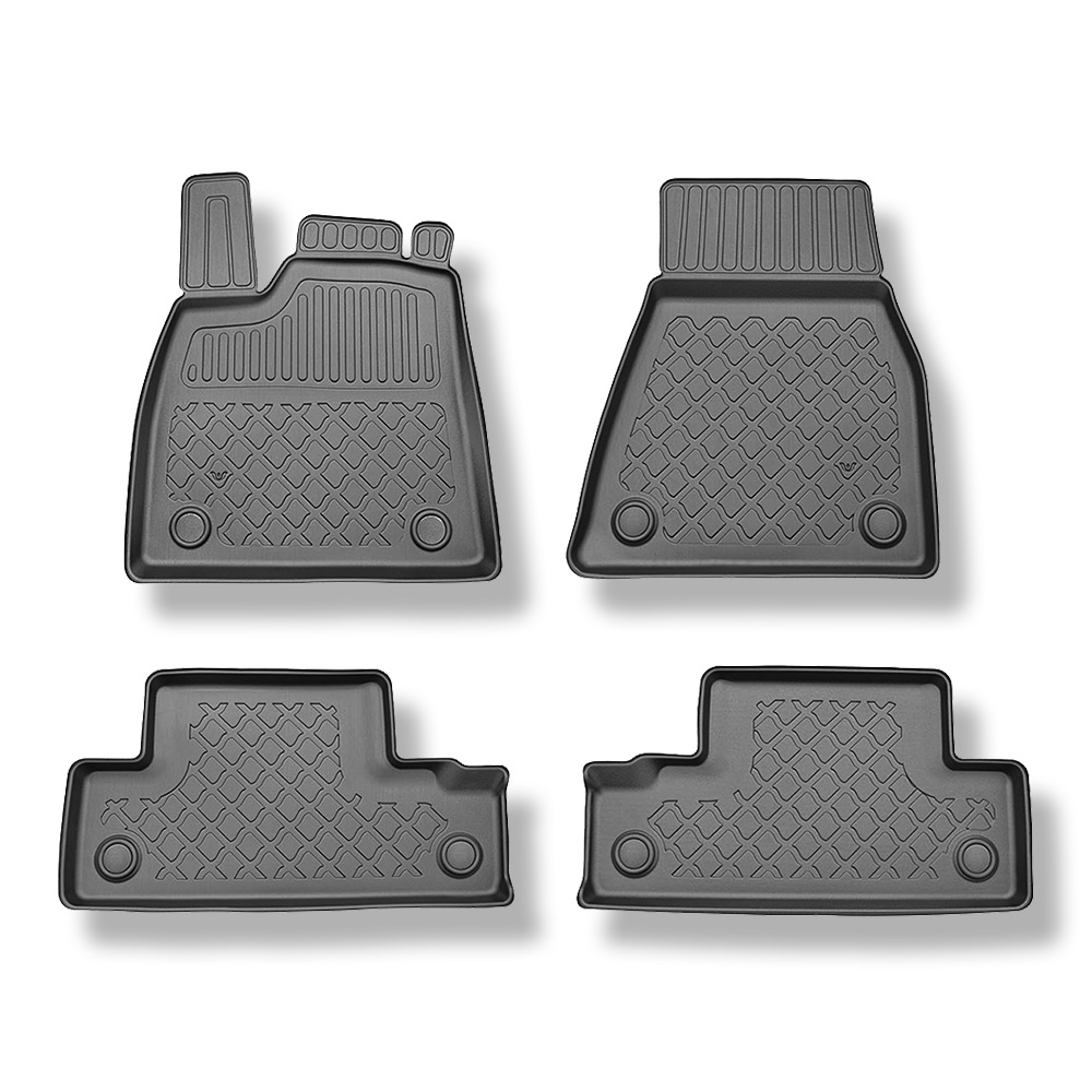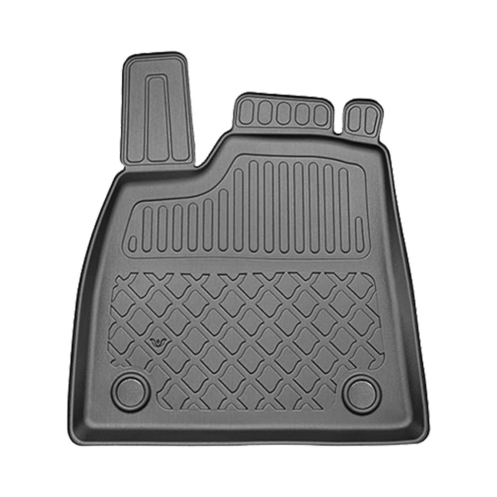 - Koberčeky majú moderný vzor s matnou konečnou úpravou. Každá súprava je vyrobená na mieru pre konkrétny model a generáciu auta, čo zaisťuje stopercentné prispôsobenie podlahe vozidla. Súprava tiež obsahuje zarážky, ak sa v danom modelu auta vyskytujú.