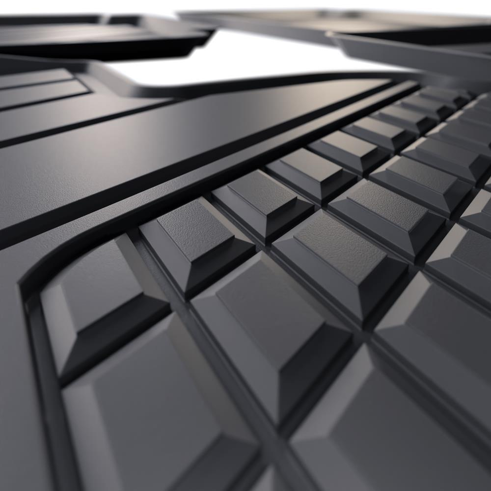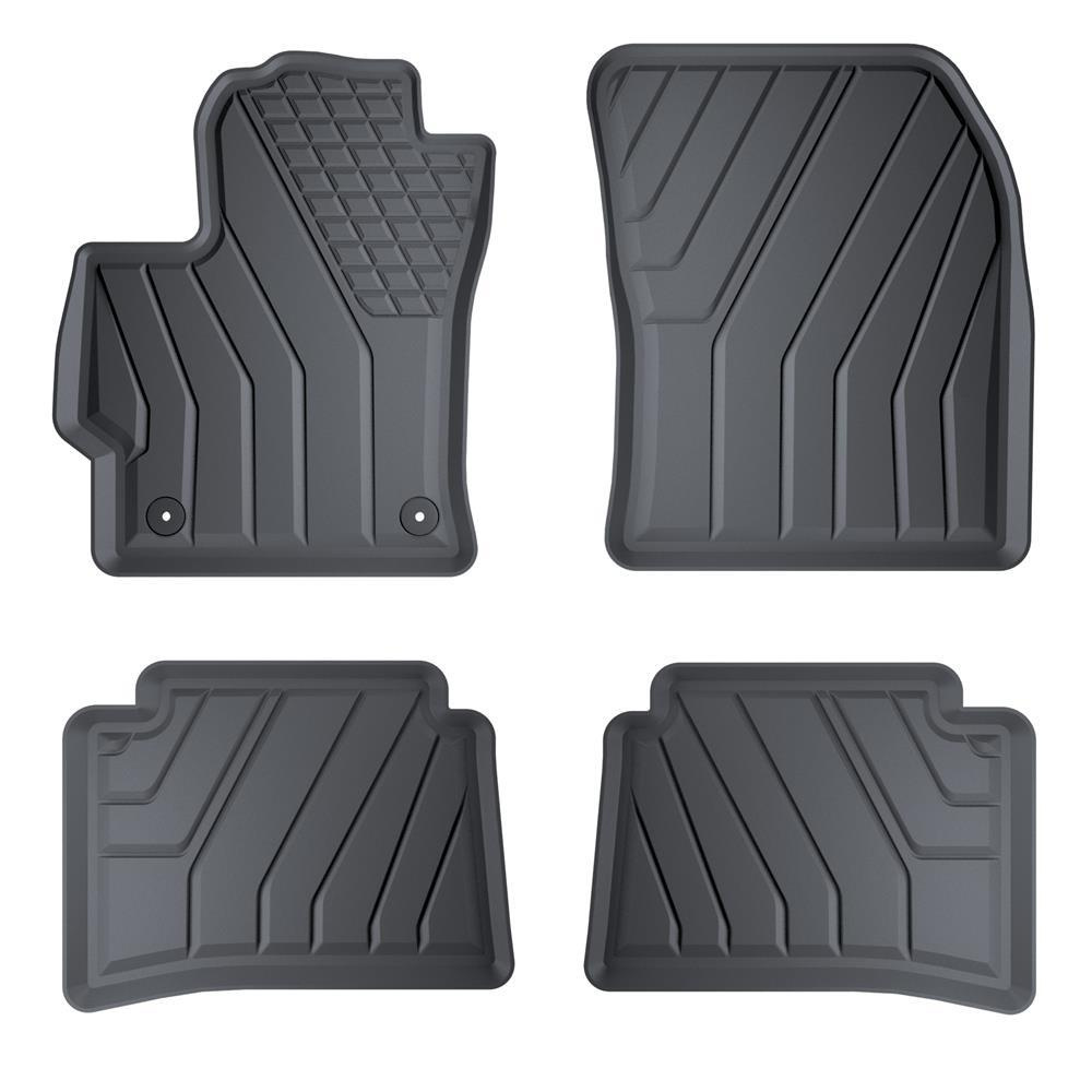 - Koberčeky majú moderný vzor s matnou konečnou úpravou. Každá súprava je vyrobená na mieru pre konkrétny model a generáciu auta, čo zaisťuje stopercentné prispôsobenie podlahe vozidla. Súprava tiež obsahuje zarážky, ak sa v danom modelu auta vyskytujú.