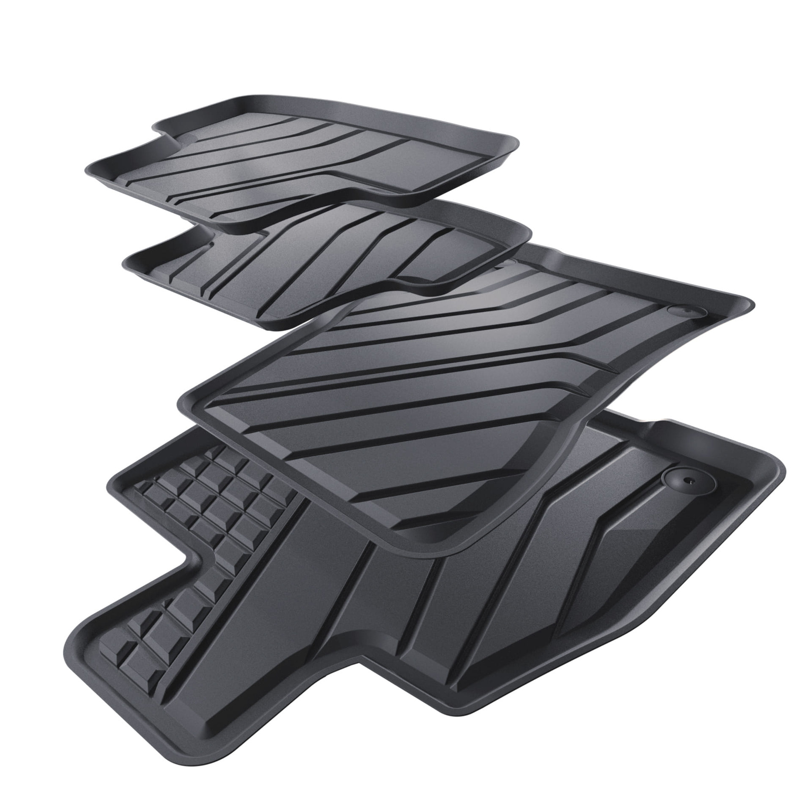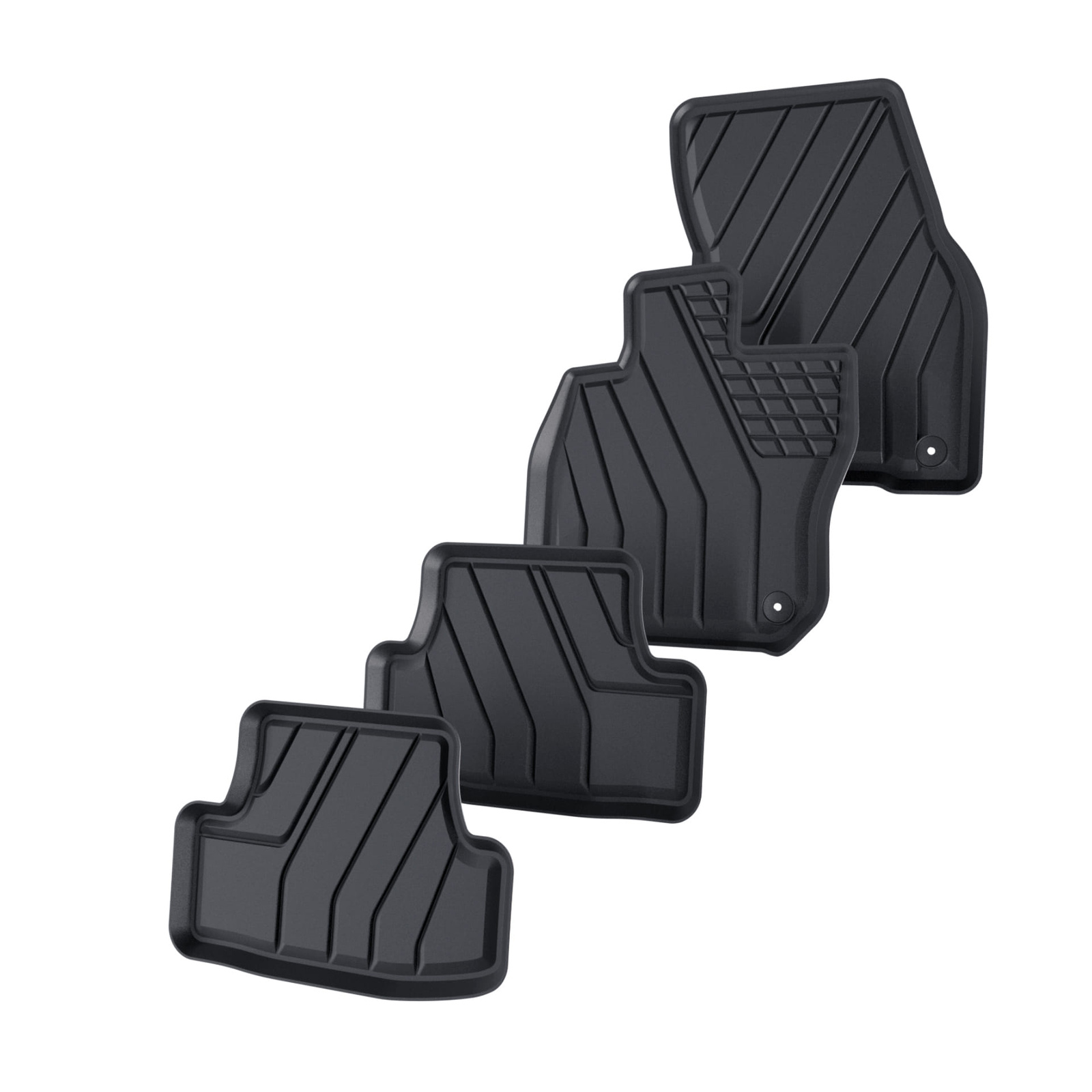- Koberčeky majú moderný vzor s matnou konečnou úpravou. Každá súprava je vyrobená na mieru pre konkrétny model a generáciu auta, čo zaisťuje stopercentné prispôsobenie podlahe vozidla. Súprava tiež obsahuje zarážky, ak sa v danom modelu auta vyskytujú.