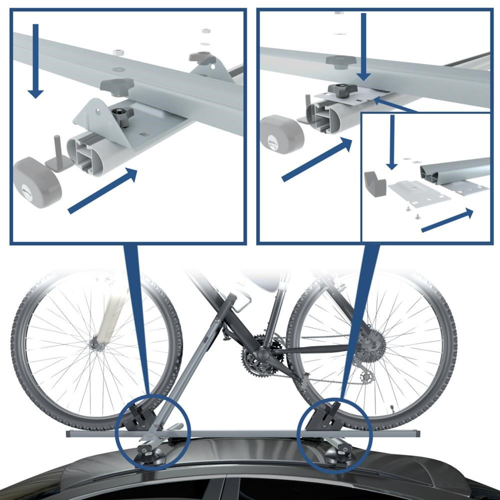 - 3x kompletný držiak na bicykel vrátane bezpečnostného zámku a podložiek pod kolesá, kolíkov pre montáž na hliníkových tyčiach s T profilom, u-skrutkami (strmeňmi) pre montáž na tyče so šírkou do 53 mm. Pre tyče bez T-profilu so šírkou väčšou ako 53 mm je nutné použiť ďalší adaptér.