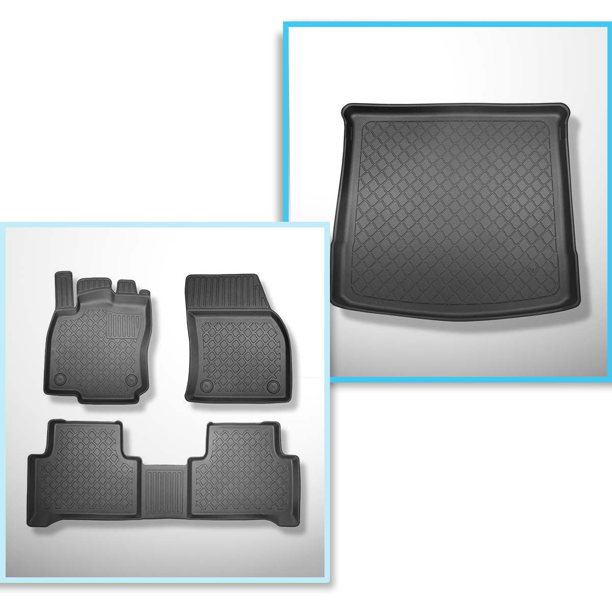 Súprava rohož do batožinového priestoru a autokoberčeky TPE na mieru do: Volkswagen Touran II MPV (09.2015-....) - 5/7 miest; tretí rad znížený