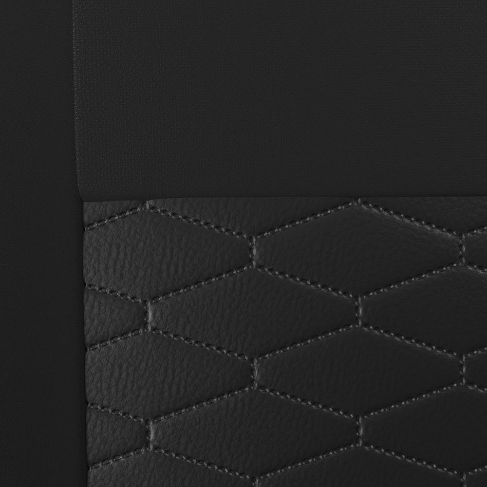 - Poťahy sú vyrobené z vysoko kvalitnej prešívanej imitácie kože v stredovej časti a z vysoko kvalitných čalúnnických materiálov v bočných častiach.