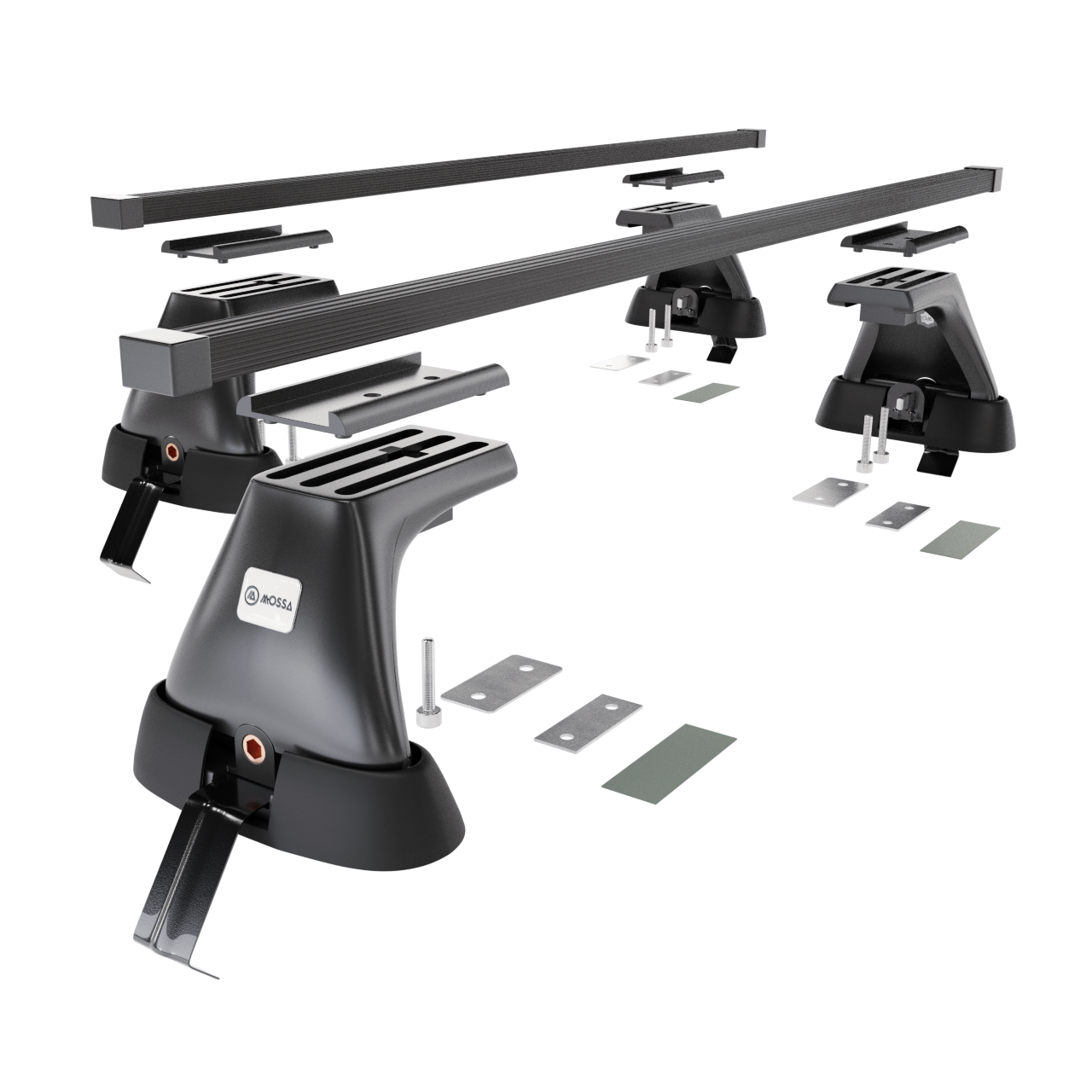 - 4 pätky (držiaky) – pre normálne strechy, nosnosť 75 kg (alebo podľa odporúčania výrobcu vozidla).