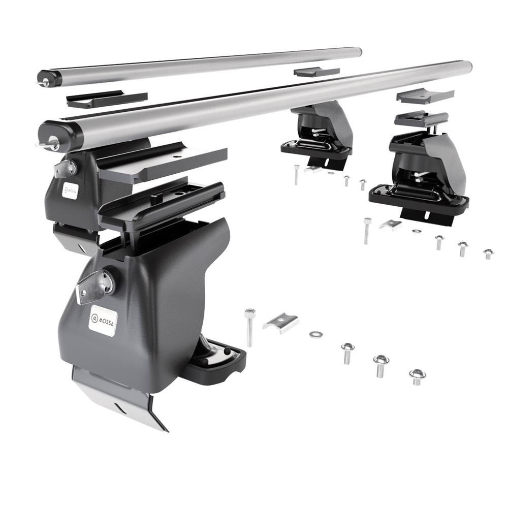 - Základný strešný nosič pozostáva z 2 pevných hliníkových nosníkov a 4 držiakov (tzv. pätiek) <