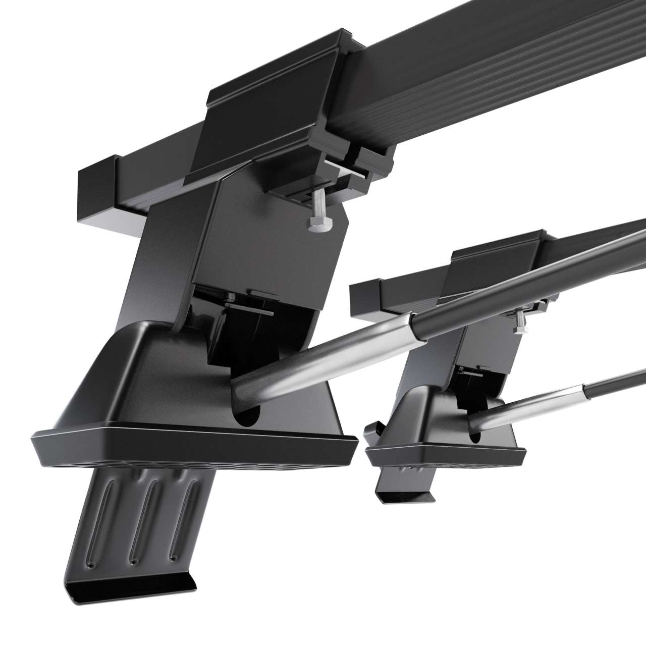 - Základný strešný nosič pozostáva z 2 pevných oceľových nosníkov a 4 držiakov (tzv. pätiek) <