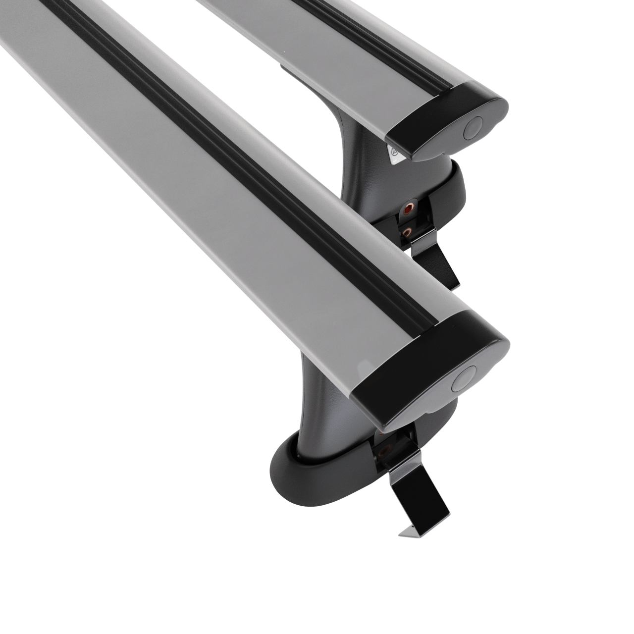 - Základný strešný nosič pozostáva z 2 pevných hliníkových nosníkov a 4 držiakov (tzv. pätiek) <